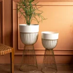 Luxe Metal Floor Planter With Stand Gold Set Of 2