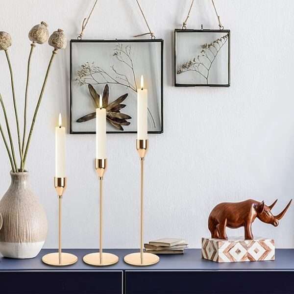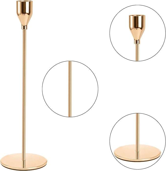 Rose Gold Candle Holders for Tapered Candles Set of 3, Table Decorative Candlestick Holders Metal Candle Stand for Dining Party Wedding, Fits 3/4 Inch Slim Candle and Led Candles